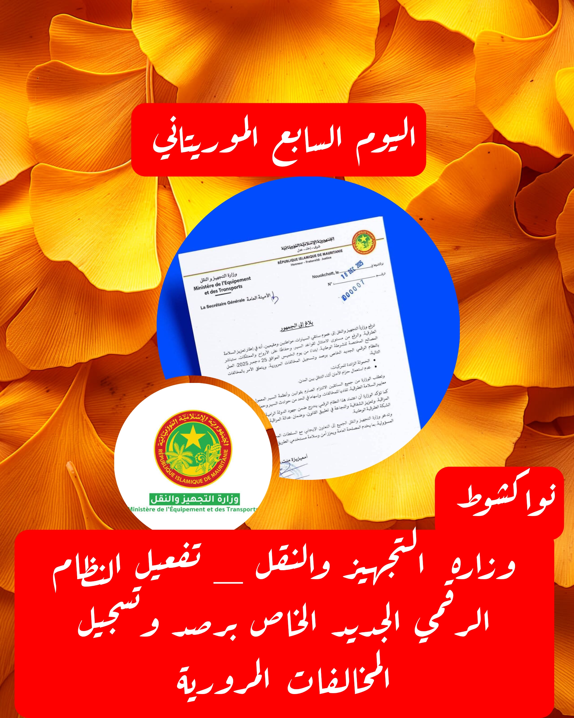 قالت وزارة التجهيز والنقل إن المصالح المختصة للشرطة الوطنية ستباشر ابتداءً من يوم الخميس الموافق 25 دجمبر 2025، العمل بالنظام الرقمي الجديد الخاص برصد وتسجيل المخالفات المرورية.