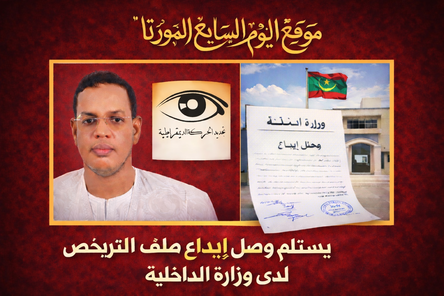 نواكشوط اليوم السابع الموريتاني استلم حزب تجديد الحركة الديمقراطية (تحدي) من وزارة الداخلية واللامركزية الوصل المؤقت لإيداع ملف ترخيص الحزب.